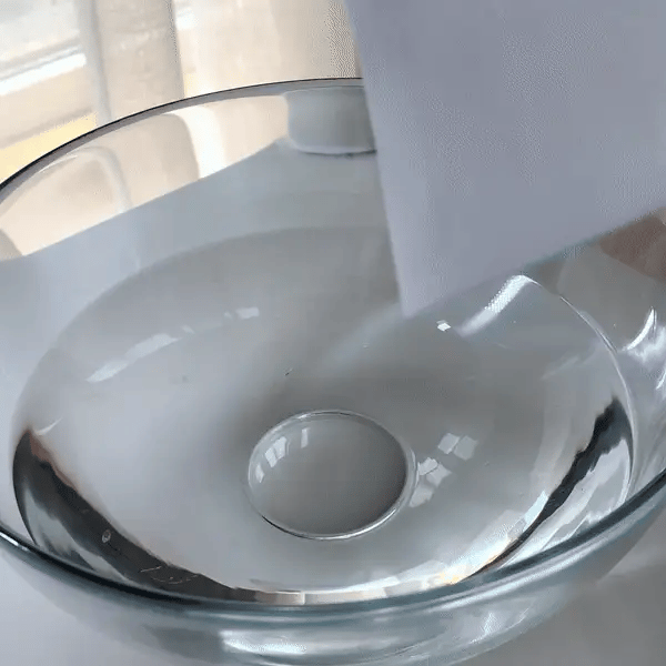 Drop the sheet into water, and within moments it will completely dissolve, releasing a light, refreshing lemon scent. You can help it fizz up by simply swishing the water with your hand.