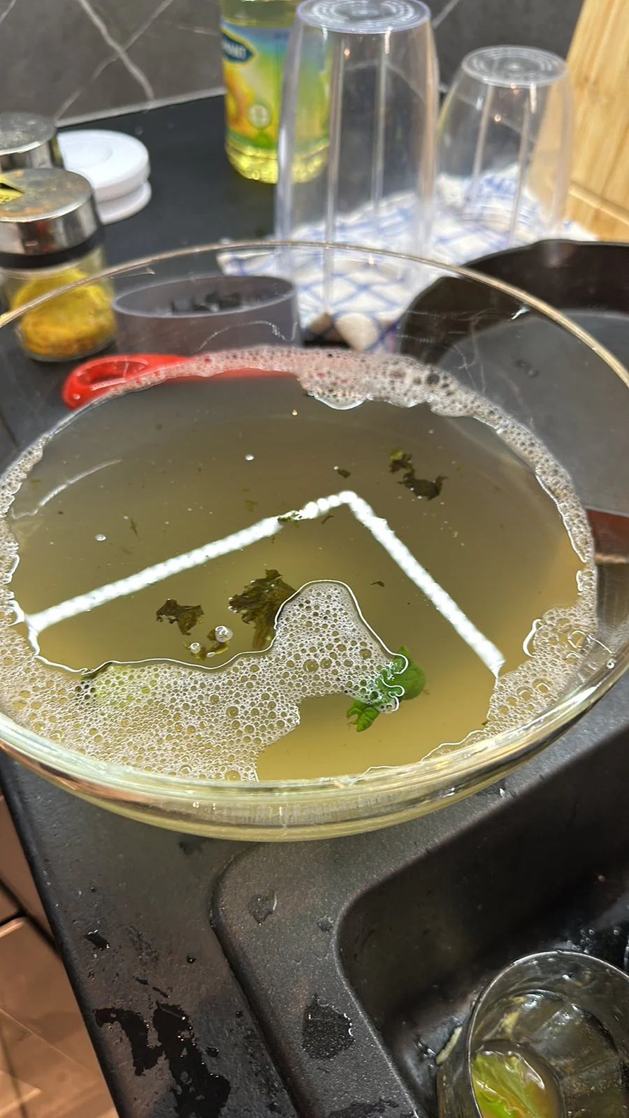 This is what the Cleenish solution looked like after one of our users washed arugula in it—arugula that was labeled "washed and ready to use" on its packaging.